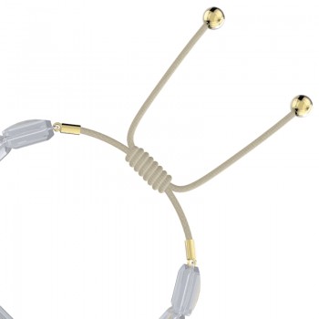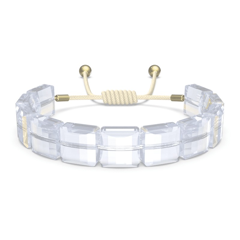 Bracciale della collezione Letra di Swarovski, realizzato con cristalli bianchi taglio square e rifinito con un cordino regolabile in cotone cerato. Su di uno dei cristalli è presente una luna gialla stampata.