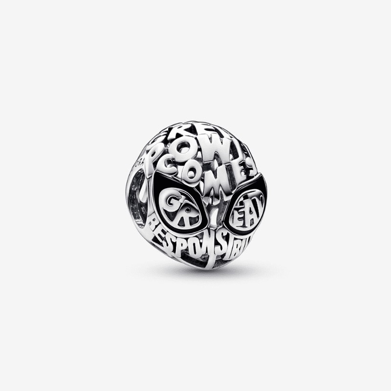 Charm Spider-Man della collezione Marvel x Pandora. Realizzato in Argento 925 con smalto nero.