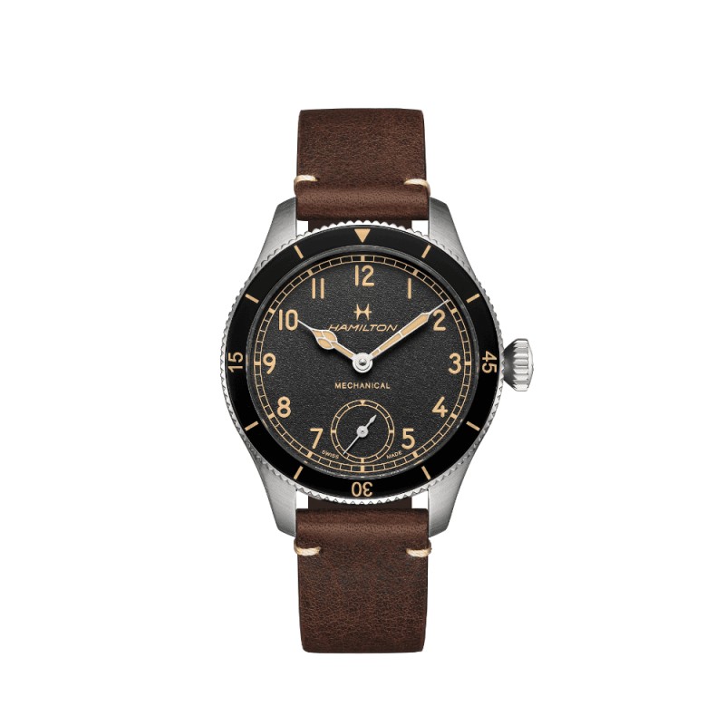 Il movimento meccanico H-50 a carica manuale, sviluppato da Hamilton, garantisce una riserva di carica estesa fino a 80 ore. È la scelta perfetta per gli appassionati di orologi tradizionali che amano interagire con il proprio segnatempo e apprezzano la sensazione autentica della carica manuale.